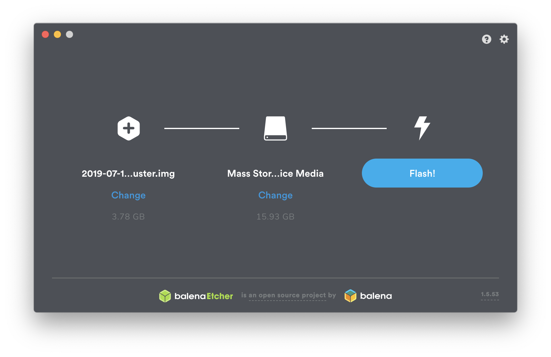 다음으로 https://www.balena.io/etcher/에 접속하여 자신이 사용하는 OS에 맞는 버전을 찾아 다운로드한 후 8기가 이상의 용량을 가진 마이크로 SD카드를 찾는다. 컴퓨터에 꼽고 img파일과 마이크로 SD카드를 선택해 Flash! 버튼을 누르면 부팅할 수 있는 마이크로 SD카드가 완성된다.