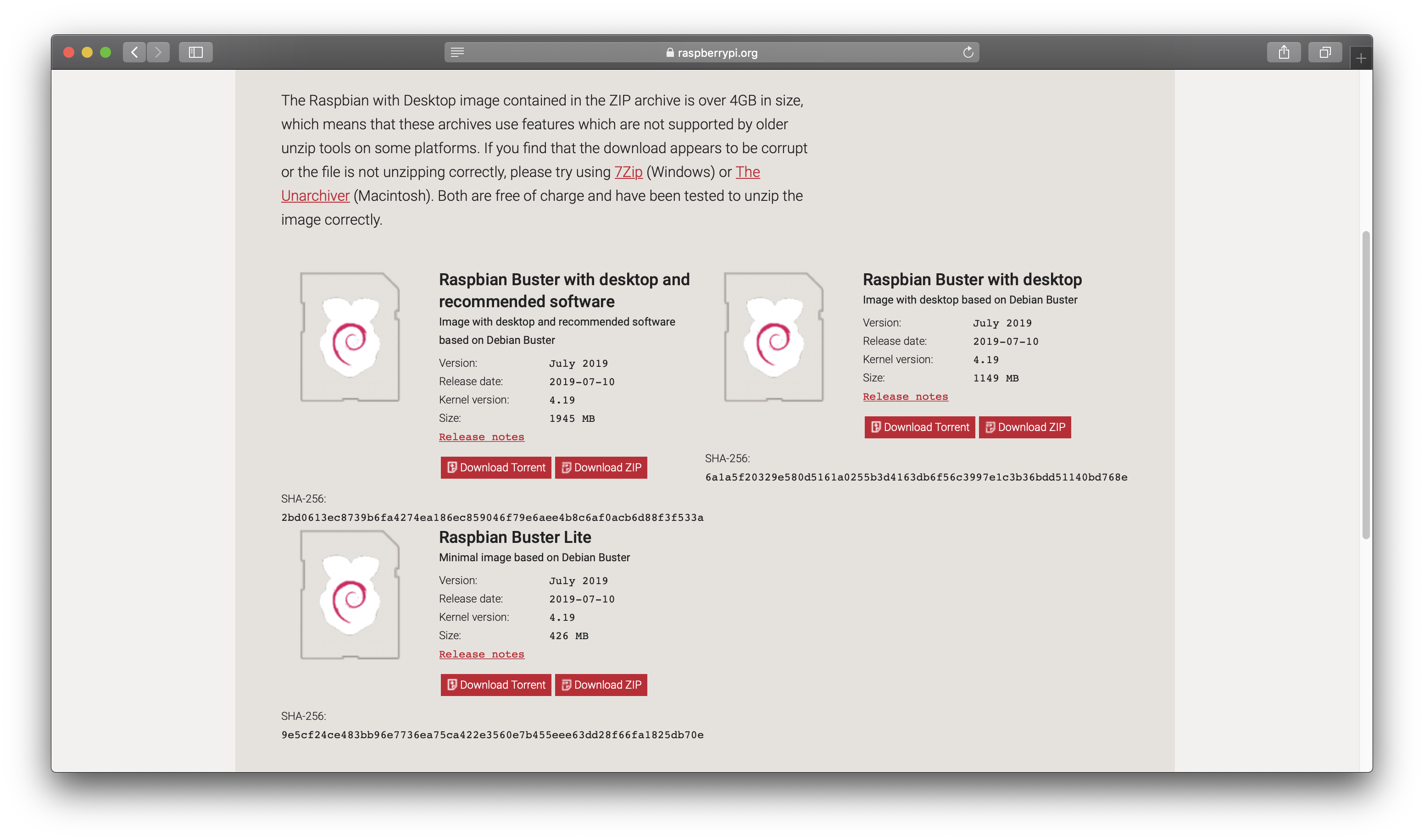 라즈베리파이 공식 홈페이지. 이 곳 Download 탭에서 OS를 다운로드한다. 내가 가지고 있는 게 라즈베리파이 3B 모델인데 벌써 다음 버전이 나왔구나 싶었다. 듀얼 모니터를 지원한다니 놀라울 따름이었다.