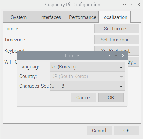 나눔 폰트의 설치를 진행하는 화면. 좋은 퀄리티의 폰트를 오픈 소스로 쓸 수 있다니, 네이버가 새삼 고맙다. 다음으로, 설치한 나눔폰트를 이용하여 라즈비안의 시스템 언어를 한국어로 바꾸어준다. 좌측 상단에 라즈베리파이 로고를 클릭하면 윈도우의 시작화면처럼 메뉴가 내려오는데 Preferences > Raspberry Pi Configuration 에서 Localisation > Set Locale... 를 클릭한 후 ko (Korean)과 UTF-8로 선택해준다. 인코딩을 UTF-8로 설정한 이유는 맥북의 터미널 기본 인코딩이 유니코드이기 때문에 SSH 연결을 했을 때 EUC-KR로 출력되는 한국어는 깨졌기 때문이다. 맥북 터미널 설정을 바꿔주면 되지만 라즈베리파이에서 바꾸는 것이 더 간편하여 이렇게 설정했다.