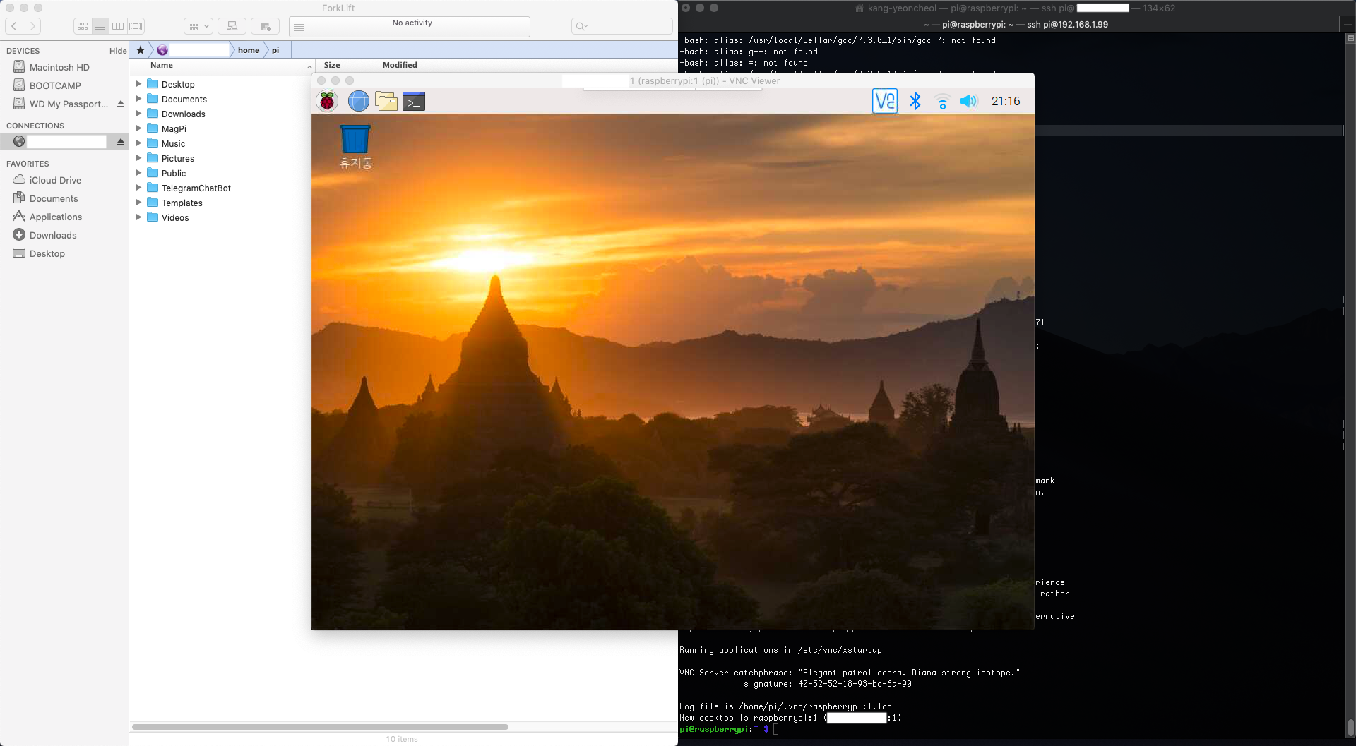 지난 포스팅에서는 라즈베리파이를 다시 꺼내어 먼지를 털어내고 기본적인 세팅을 끝마쳤다. 그런데 현재 상태에서 라즈베리파이를 사용하려면 키보드, 마우스, 모니터까지 연결해야할 것들이 너무 많았다. 이미 맥북 하나에 모니터와 키보드, 마우스를 사용하고 있는 현재 나의 작업 환경에서는 라즈베리파이의 주변 기기까지 감당하기엔 버거웠다. 그래서 이번 포스팅에서는 한글 폰트 설치부터 사용중인 컴퓨터에 무선으로 연결하여 창으로 된 프로그램처럼 운용하도록 설정한 삽질기를 소개하고자 한다.